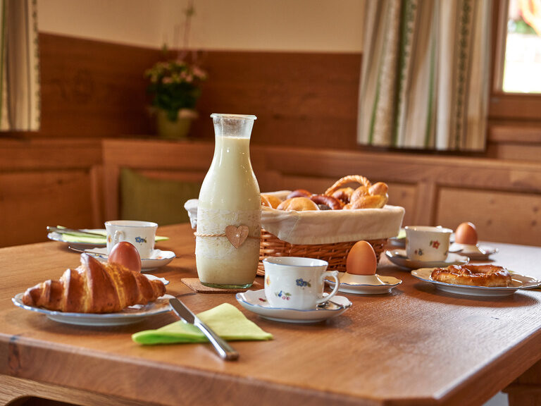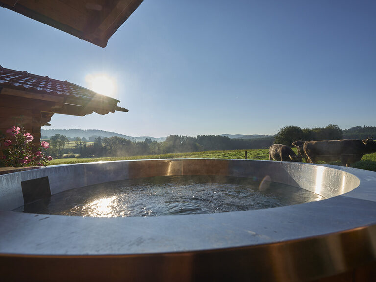 Genießen Sie die ersten Sonnenstrahlen auf der Terrasse und frühstücken Sie in Gesellschaft unserer Pferde mit unverstelltem Blick auf die herrliche Landschaft.