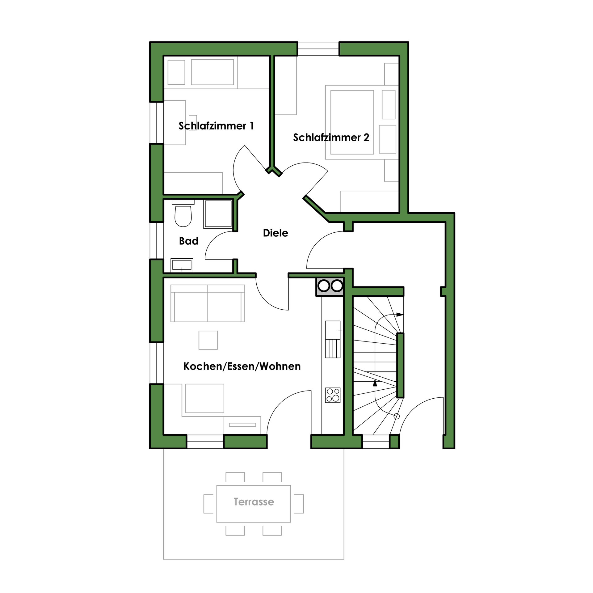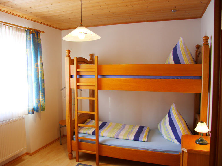 Zwei separate Schlafzimmer (Elternschlafzimmer mit Doppelbett und Kinderzimmer mit Etagenbett)