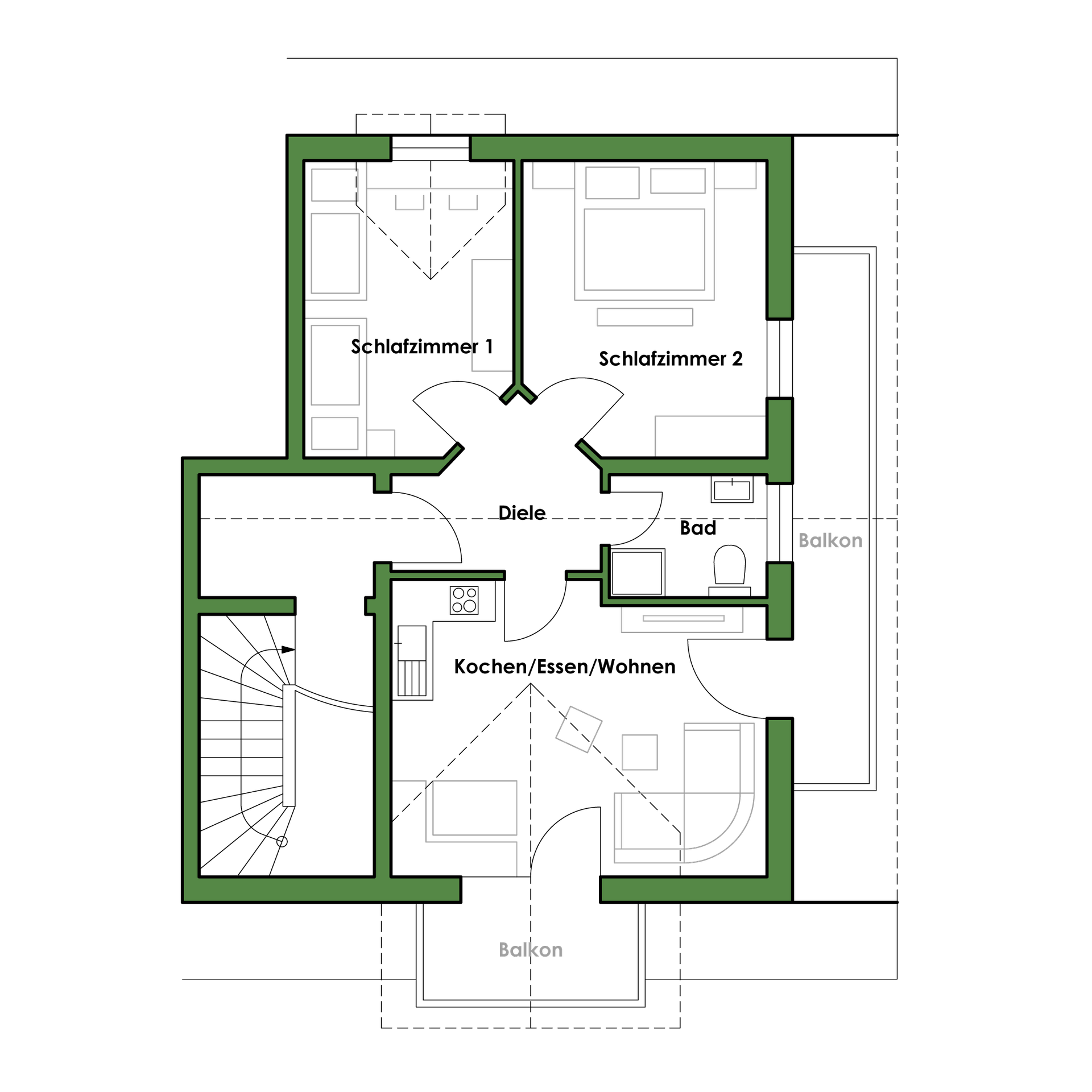 - Zwei geräumige Balkone