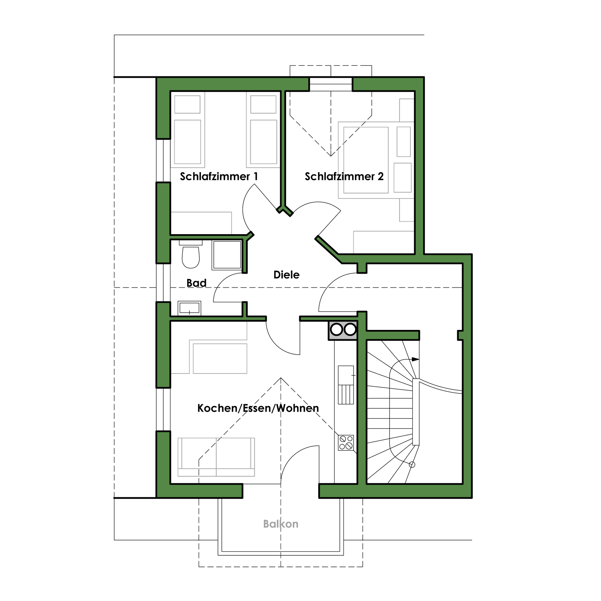 - Zwei separate Schlafzimmer (Elternschlafzimmer mit Doppelbett und Kinderzimmer mit zwei Einzelbetten)